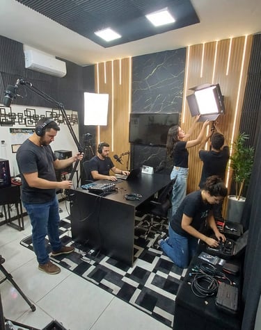 Momentos reais do estúdio Falowcast